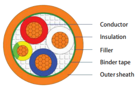 0.6/1KV 3C+E XLPE Circular Orange Cable, primarily applied in buildings and industrial facilities where mechanical damage is not a concern. Compatible with indoor/outdoor deployment, and can be installed in enclosed conduits or underground ducts.