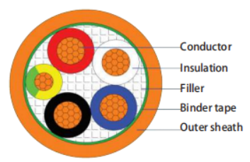0.6/1KV 4C+E PVC Circular Orange Cable, primarily applied in buildings and industrial facilities where mechanical damage is not a concern. Compatible with indoor/outdoor deployment, and can be installed in enclosed conduits or underground ducts.