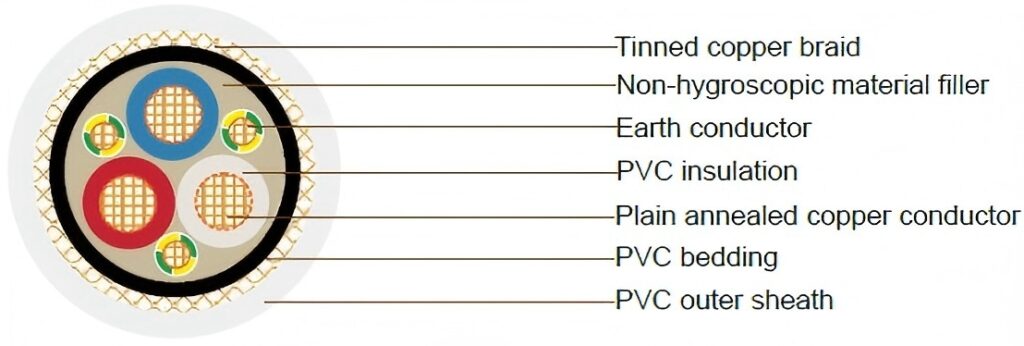 | Insulation | Flame retardant polyvinyl chloride PVC |