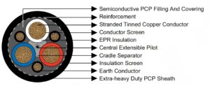 1×Central Extensible Pilot: EPR covered flexible stranded tinned copper conductor.